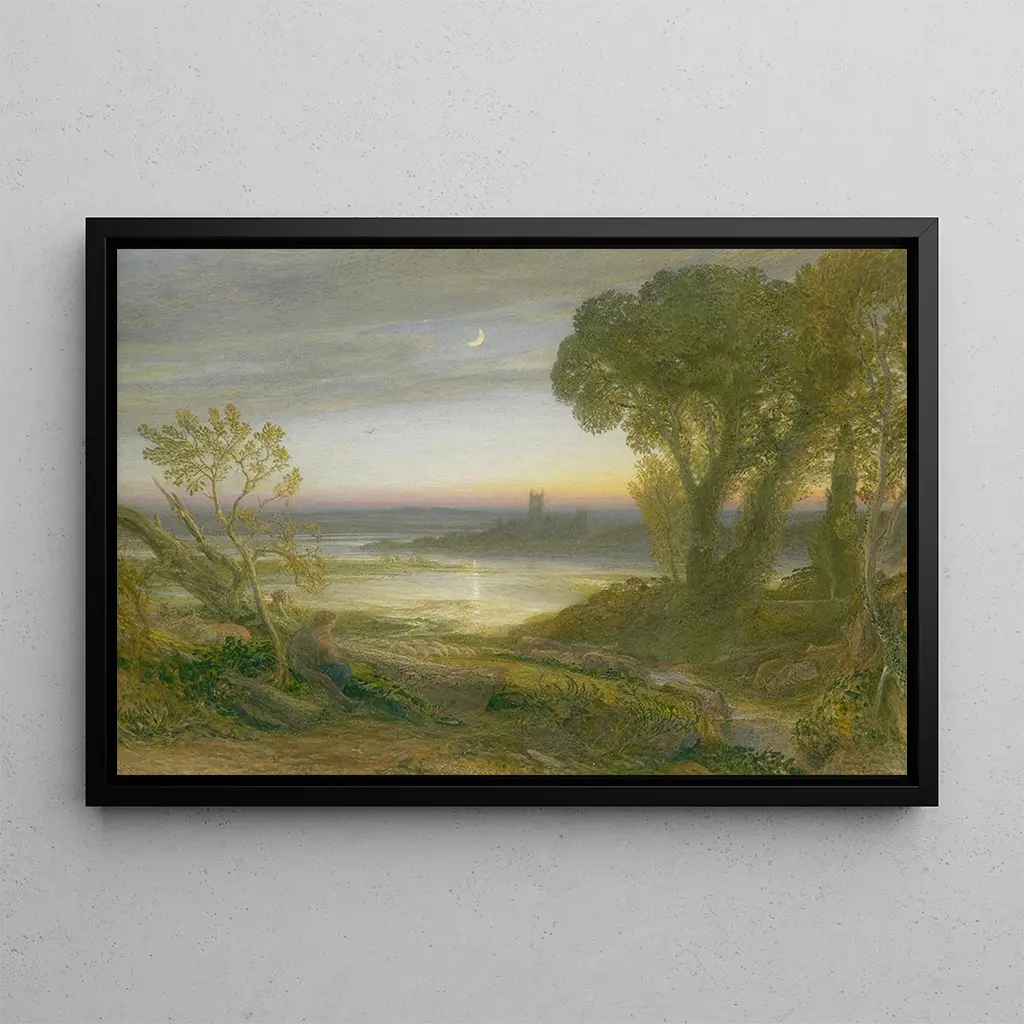 Kunsttrykket af Couvre-feu tager os med på en natlig scene fyldt med mystik og ro. De mørke nuancer, fremhævet af lysstrøg, skaber en næsten drømmende atmosfære. Samuel Palmer, mester i romantisk landskab, bruger akvarelteknik til at fange magien i skumringstimerne. Silhuetterne af træer og bygninger tegner sig med finesse, mens månens lys synes at danse over lærredet. Dette værk inviterer til eftertanke og giver et øjebliks pause i hverdagens tumult.