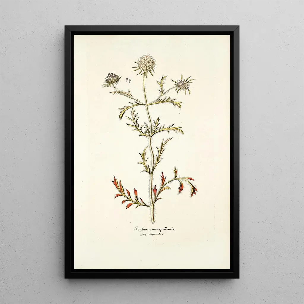 Kunsttrykket af Scabiosa monspeliensis er et elegant dekorativt valg til forskellige rum såsom stuen, kontoret eller soveværelset. Dets trykkvalitet og farvernes nøjagtighed gør det til et fængslende værk, der vil berige dit hjem. Ved at integrere dette maleri i din indretning tilføjer du et strejf af natur og ro, samtidig med at du fremhæver et kunstværk, der fejrer planternes skønhed. Dets æstetiske tiltrækningskraft og elegance gør det til et tidløst dekorativt element, der kan tilpasses forskellige indretningsstile.