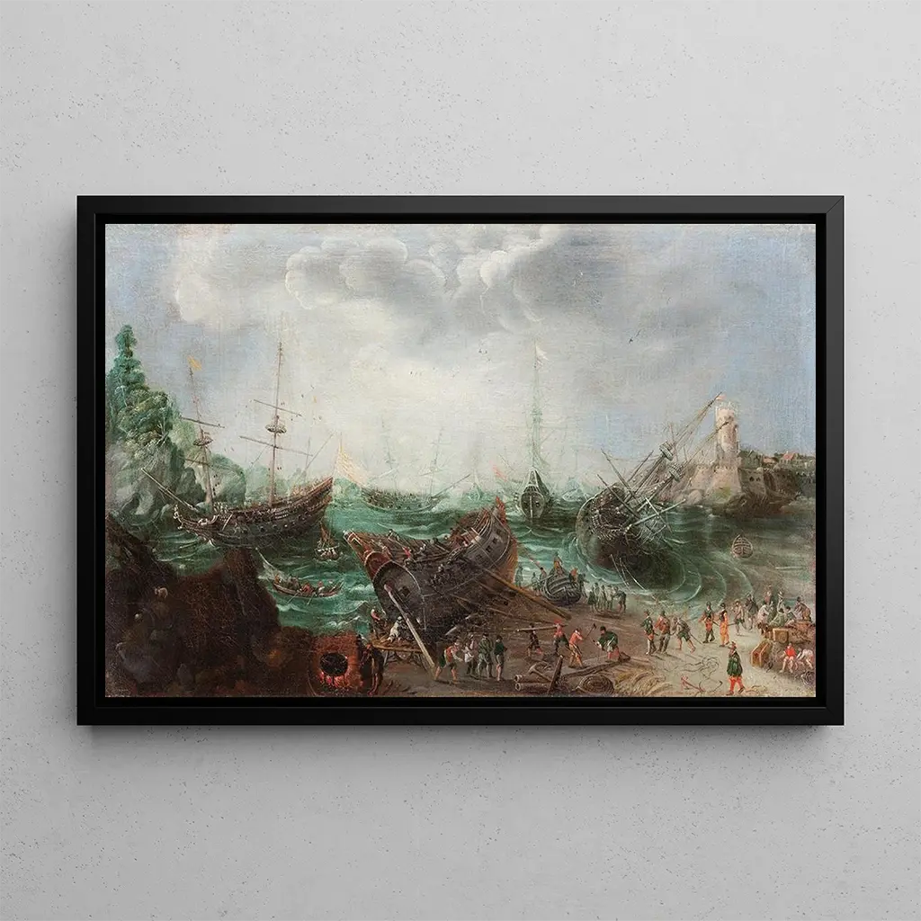 Kunsttrykket af Scene af havn af Adam Willaerts transporterer os til en maritim verden, hvor lyset danser på bølgerne. De hvide sejl på bådene skiller sig ud mod en skyet himmel, hvilket skaber en slående kontrast til de blå og grå nuancer i vandet. Willaerts' teknik, kendetegnet ved fine penselstrøg, giver liv til denne livlige scene, hvor figurerne travlt beskæftiger sig på kajen. Atmosfæren er både fredelig og dynamisk, hvilket inviterer betragteren til at forestille sig historierne, der udfolder sig i denne travle havn. Hvert detalje, fra reflektionen af bådene på vandet til de flydende skyer, bidrager til magien i dette værk.