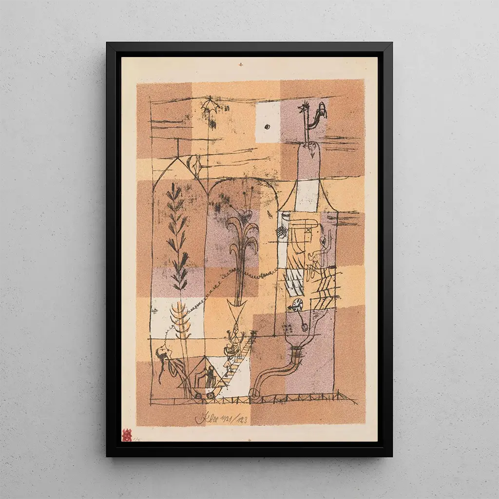 Reproduktionen af "en kunsttryk" er et centralt stykke, der vil pryde ethvert interiør, uanset om det er i en stue, et kontor eller et værelse. Dens trykkvalitet garanterer en bemærkelsesværdig trofasthed over for farver og detaljer i det originale værk, hvilket giver mulighed for at nyde Klees drømmende univers fuldt ud. Ved at vælge dette billede, vælger du en dekoration, der stimulerer fantasien og inviterer til eftertanke. Dets æstetiske tiltrækningskraft og evne til at integrere sig i forskellige indretningsstile gør det til et ideelt valg for dem, der ønsker at tilføje et kunstnerisk præg til deres opholdsrum.