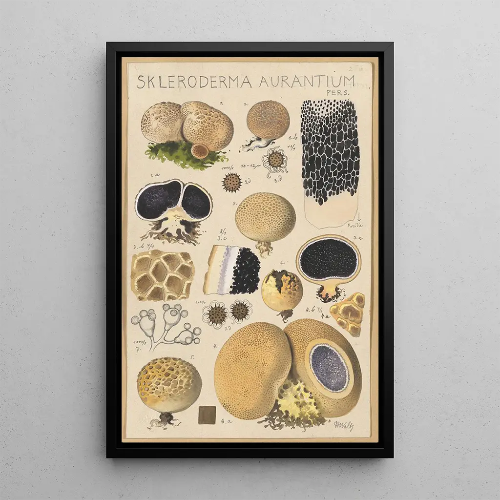 Kunsttrykket af Scleroderma aurantium Pers er et dekorativt stykke, der vil berige ethvert interiør, uanset om det er i en stue, et kontor eller et soveværelse. Dets trykkvalitet og trofasthed mod de originale detaljer gør det til et ideelt valg for kunst- og naturentusiaster. Ved at integrere dette lærred i din indretning tilføjer du et strejf af elegance og mystik, samtidig med at du vækker nysgerrigheden hos dine gæster. Det æstetiske tiltrækningskraft ved dette kunsttryk, med sine livlige farver og harmoniske komposition, gør det til en sand fordel for at skabe en varm og inspirerende atmosfære i dit opholdsrum.