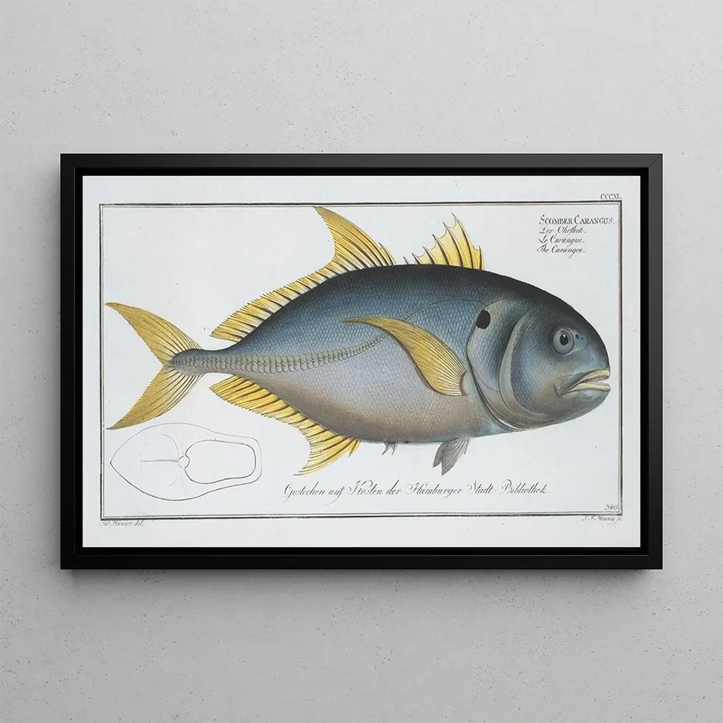 Kunsttrykket Scomber carangus, den karpe, er et ideelt dekorativt valg til forskellige rum, hvad enten det er i en stue, et kontor eller et soveværelse. Dets trykkvalitet og trofasthed over for det originale værk sikrer en bemærkelsesværdig æstetisk gengivelse. Dette billede tiltrækker opmærksomhed og vækker nysgerrighed, samtidig med at det tilfører en frisk maritim stemning til dit hjem. Ved at integrere dette lærred i din indretning giver du dit rum en beroligende atmosfære, samtidig med at du fejrer naturens skønhed og dens akvatiske vidundere.