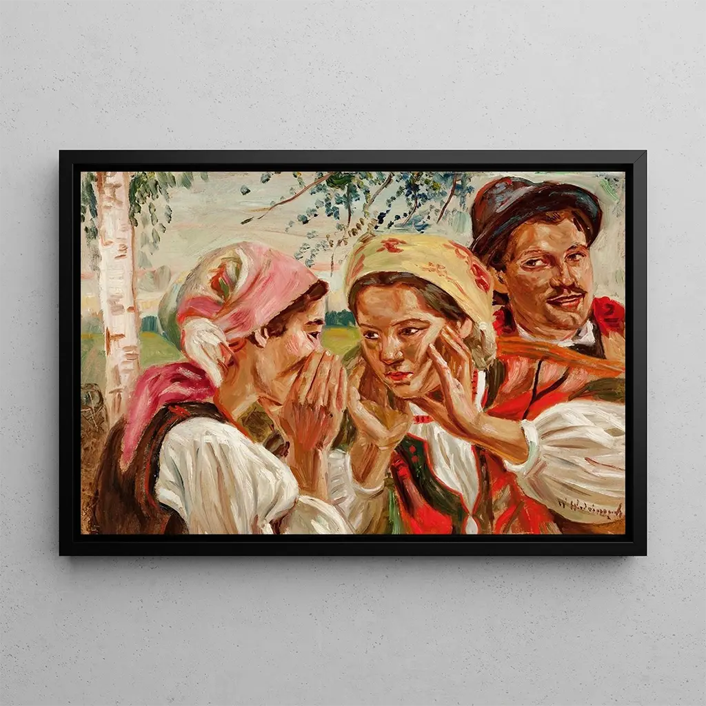 Dette kunsttryk af Secrets er en værdifuld tilføjelse til enhver kunstsamling, der tilføjer en følelsesmæssig dimension til din indretning. Uanset om det er i en stue, et kontor eller et soveværelse, tiltrækker dette lærred opmærksomhed og vækker refleksion. Dets trykkvalitet sikrer en bemærkelsesværdig trofasthed over for nuancer og detaljer i det originale værk, hvilket beriger dit opholdsrum. Ved at vælge dette kunsttryk giver du dit hjem et strejf af originalitet og dybde, samtidig med at du hylder Wodzinowskis talent og hans udforskning af sjælens mysterier.