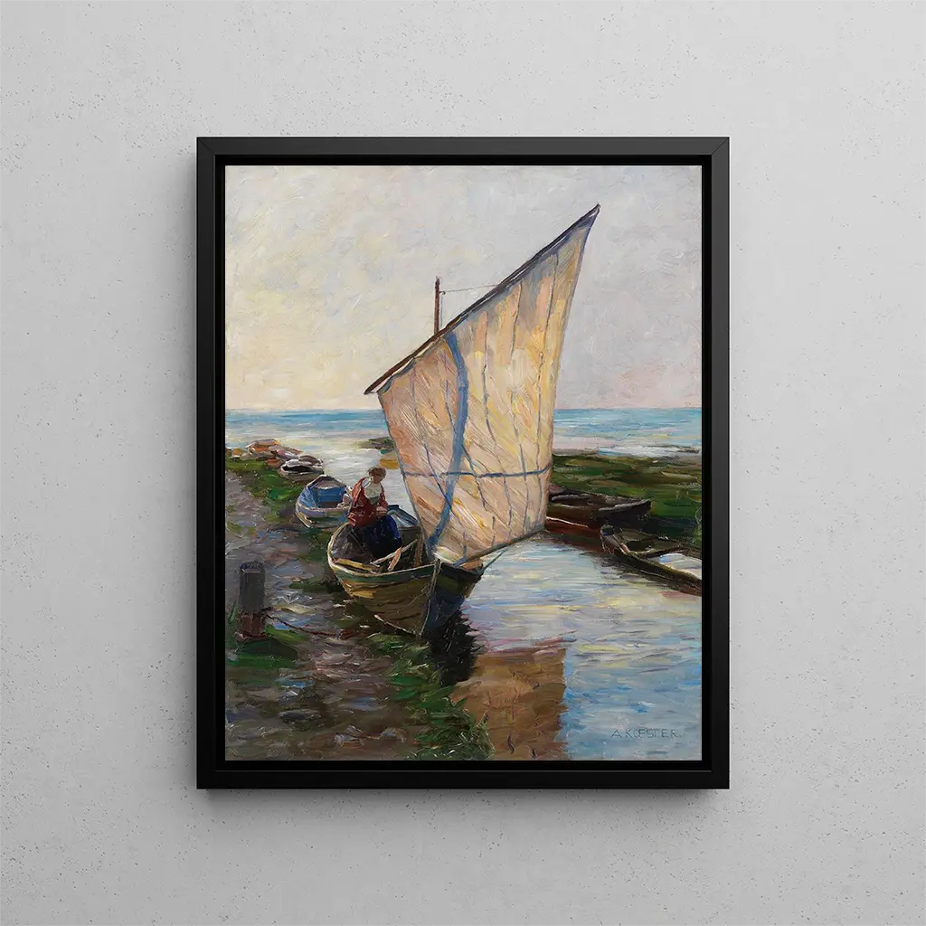 Alexander Koester, født i 1858 i Berlin, er anerkendt som en af de store mestre af marinelandskabet i det 19. århundrede. Påvirket af de store mestre i malerkunsten udvikler han en stil, der er hans egen, med en kombination af streng teknik og kunstnerisk følsomhed. Hans passion for havet og sejladsen skinner igennem i hans værker, hvor han udforsker temaer som vand og lys med en uovertruffen dybde. Koester har formået at etablere sig på sin tids kunstscene og har inspireret mange samtidige og fremtidige kunstnere til at udforske skønheden i marinelandskaber. Hans arv består, hvilket vidner om naturens betydning i kunsten og kunstnerens evne til at fremkalde følelser gennem scener fra dagligdagen.