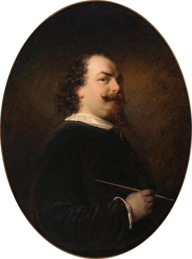 Eduard Ender, født i 1822 i Wien, er en maler, hvis værk er dybt påvirket af den romantiske bevægelse. Uddannet i et rigt kunstnerisk miljø, har han formået at udvikle en stil, der kombinerer tradition og innovation. Ender var en opmærksom observatør af sin tid, og hans værker, især dette kunstnerautoportræt, afspejler tidens bekymringer, samtidig med at de integrerer elementer af den klassiske malerkunst. Hans indflydelse strækker sig ud over hans egen kunstneriske produktion, og inspirerer mange samtidige kunstnere, der har set i ham en model for passion og dedikation til kunsten. Ved at udforske sine emners indre verden har Ender åbnet