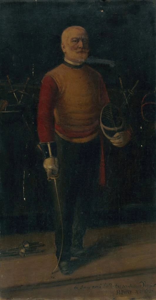 I Autoportrait en maître d'armes afslører Henri Petit sig selv med en slående intensitet. Lærredet, rigt på livlige farver og kontraster, fanger øjet og fantasien. Maleren, bevæbnet med sit sværd, positionerer sig med selvtillid, hvilket symboliserer både mestringen af hans kunst og en vis bravur. Petits teknik, der blander realisme og impressionistiske strejf, skaber en dynamisk og levende atmosfære. De omhyggelige detaljer i hans kostume og det beslutsomme udtryk i hans ansigt vidner om hans engagement i sit håndværk, og inviterer seeren til at dykke ned i hans kunstneriske univers.