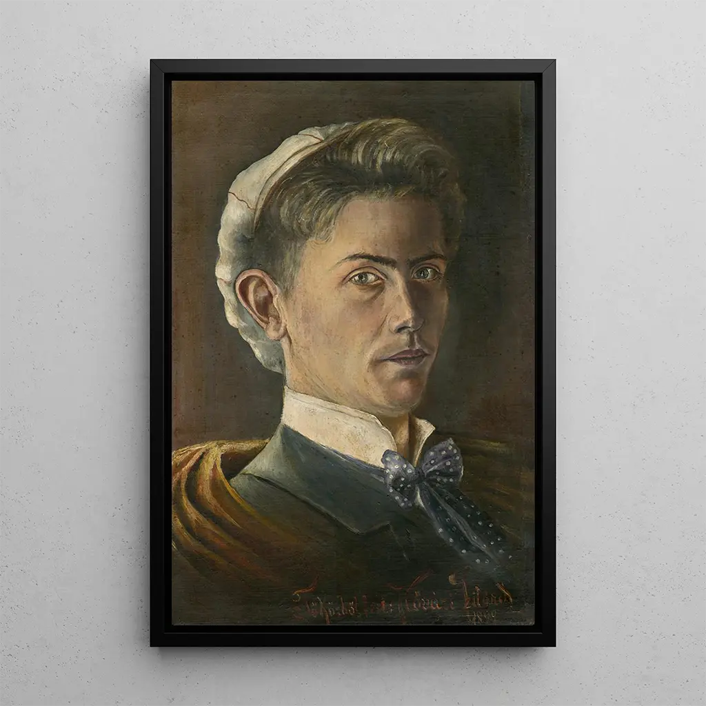 I dette selvportræt afslører Konstantin Korovin sig selv med en slående intensitet. De levende farver og de dristige penselstrøg skaber en atmosfære, der er både intim og dynamisk. Den uklare baggrund fremhæver kunstnerens ansigt, understreger hans udtryksfulde træk og hans gennemtrængende blik. Lyset spiller en vigtig rolle, idet det subtilt oplyser hans ansigt, mens resten af lærredet er indhyllet i en mystisk skygge. Dette værk nøjes ikke med at afbilde et ansigt; det fanger selve essensen af kunstneren og inviterer betragteren til at dykke ned i hans kreative univers.
