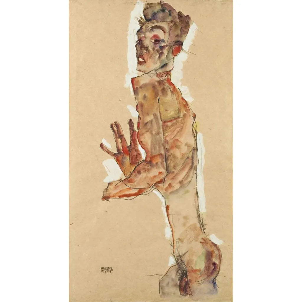 Egon Schiele, født i 1890, er en af de mest indflydelsesrige kunstnere i begyndelsen af det 20. århundrede, anerkendt for sin centrale rolle i den østrigske ekspressionistiske bevægelse. Opvokset i et kunstnerisk miljø, blev han stærkt påvirket af Gustav Klimt og den secessionistiske stil. Schiele udforskede temaer som seksualitet, død og identitet gennem sine værker, ofte ved brug af selvportrætter til at udtrykke sine indre kampe. Egon Schieles selvportræt med spredte fingre, udført i 1910, illustrerer perfekt denne søgen efter ægthed og selvforståelse.