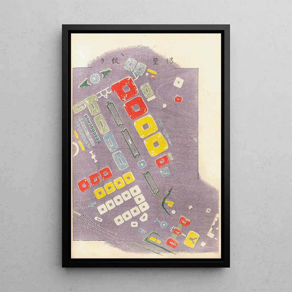 Kunsttrykket af Shin zuan Pl 5 tager os med ind i en verden, hvor mønstre snor sig med en uendelig finesse. Farverne, både livlige og subtile, skaber en varm og indbydende atmosfære. Hvert detalje er omhyggeligt udarbejdet, hvilket afslører Nakayasu Shinzaburōs mestre i kompositionskunsten. Dette lærred fremkalder en følelse af bevægelse, som om formerne danser under vores øjne, og inviterer til en opmærksom og fordybende betragning. Den atmosfære, der udspringer af dette værk, er både beroligende og stimulerende, en ægte hyldest til skønheden.