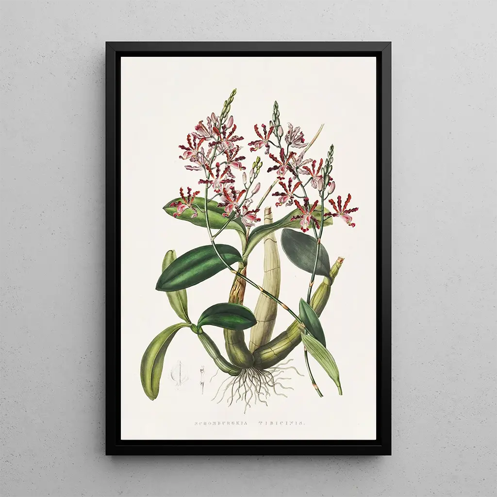 Kunsttrykket af Shomburgkia Tibicinis er et ideelt dekorativt stykke til at berige dit hjem. Uanset om det er i stuen, på kontoret eller i soveværelset, tilføjer dette lærred et strejf af elegance og farve. Dets trykkvalitet sikrer en bemærkelsesværdig trofasthed mod originalens detaljer, hvilket giver en æstetisk tiltrækning, der ikke kan benægtes. Ved at vælge dette lærred vælger du et værk, der ikke blot forskønner dit rum, men også fortæller en fascinerende historie om naturen. Dette kunsttryk er en ægte hyldest til blomsterens skønhed, perfekt for kunst- og botanikkendere.