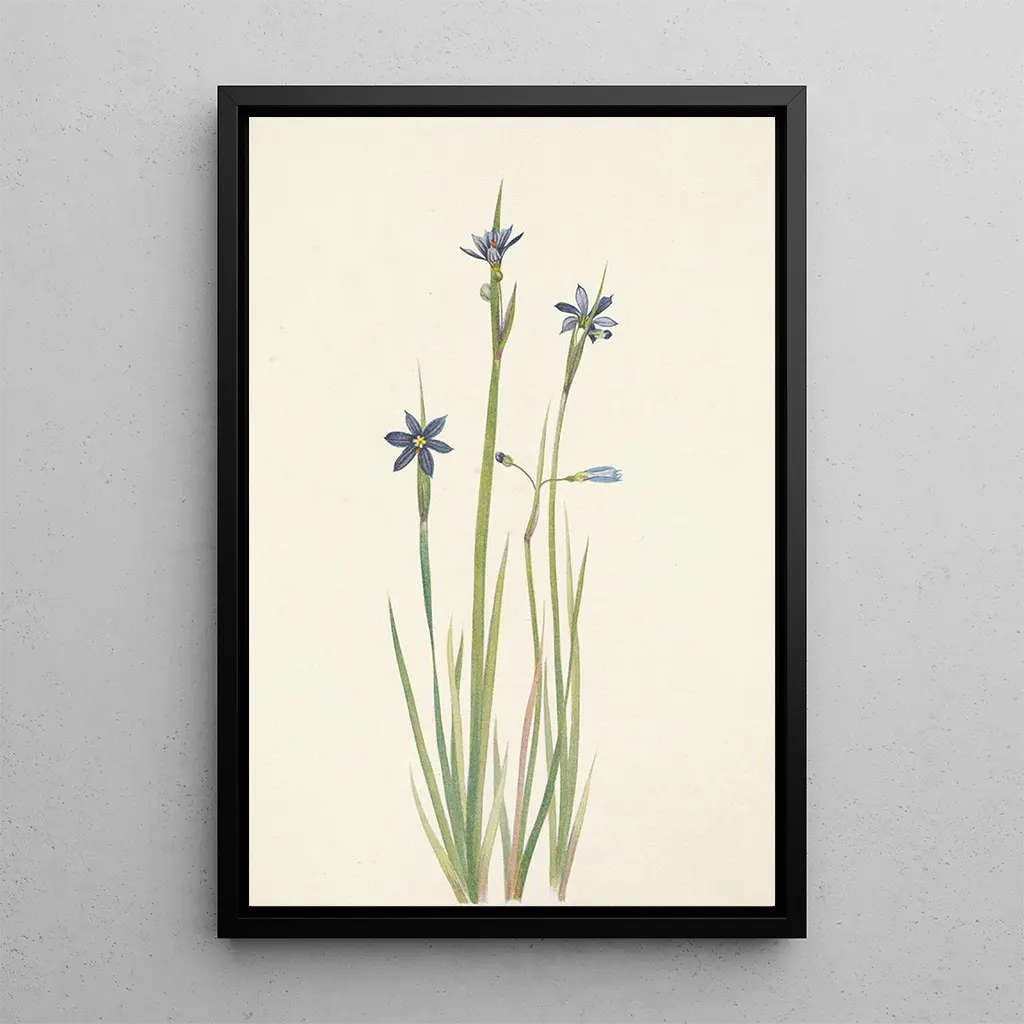 Kunsttrykket Sisyrinchium med smalle blade Sisyrinchium angustifolium tager os med ind i en verden af blidhed og lethed. Pastelfarverne flettes harmonisk sammen og fremkalder friskheden af en forårsdag. Hvert eneste detalje i dette lærred er omhyggeligt observeret, hvilket fremhæver finheden af blomsterbladene og ynde af bladene. Akvarelteknikken, anvendt med stor mestring, giver værket en næsten æterisk atmosfære, hvor naturen synes at tage liv under vores øjne. Kunstneren formår at fange selve essensen af denne plante og inviterer betragteren til en beroligende meditation.
