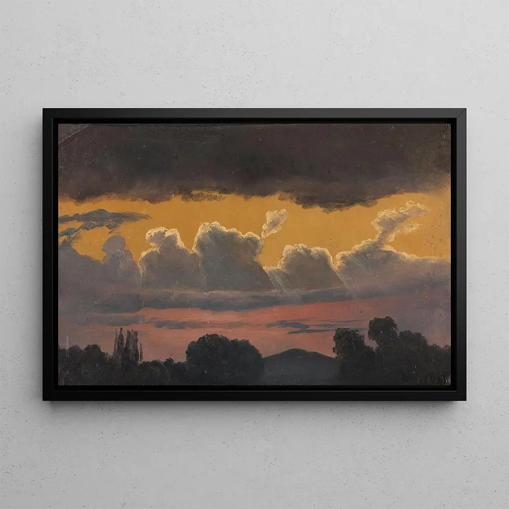 Studie af skyer over landskab: en harmoni mellem himmel og jord Kunstværket "Studie af skyer over landskab" af Knud Baade fremkalder en rolig og eftertænksom atmosfære. De delikate nuancer af blå og grå blander sig for at skabe en stormfuld himmel, mens landskabet nedenfor tegner sig med en beroligende blidhed. Baades teknik, der dygtigt kombinerer olie og pensel, giver liv til skyer, der synes at svæve over en fredelig jord. Hvert penselstrøg afslører en beherskelse af lyset, hvilket forvandler maleriet til en ægte invitation til drømmeliv, hvor betragteren kan flygte og fare vild i himmelens uendelighed. Knud Baade: en mester i romantisk landskab Knud Baade, norsk maler fra det 19. århundrede, er kendt for sine landskaber præget af romantik. Påvirket af den vilde natur i sit hjemland, har han formået at fange essensen af de norske himle med en unik følsomhed. Aktiv i en periode, hvor romantikken var på sit højeste, blev Baade inspireret af kunstnere som Caspar David Friedrich. Hans arbejde, selvom det er mindre kendt end hans samtidiges, har efterladt et uudsletteligt aftryk i skandinavisk kunsthistorie, og markerer en æra, hvor naturen blev hyldet som et spejl af den menneskelige sjæl. En dekorativ erhvervelse med mange fordele Reproduktionen af "Studie af skyer over landskab" er et dekorativt stykke, der vil pryde ethvert interiør, uanset om det er i en stue, et kontor eller et soveværelse. Dens trykkvalitet og trofasthed mod de originale farver gør den til et ideelt valg for dem, der ønsker at tilføre et kunstnerisk præg til deres rum. Med sin ubestridelige æstetiske appel inviterer dette maleri til eftertanke og ro, og forvandler dit miljø til et fredeligt tilflugtssted. Forkæl dig selv med dette lærred for at berige din indretning og skabe en beroligende atmosfære derhjemme.