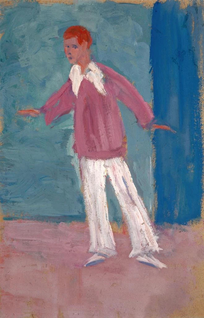"Acteur gesticulant" d'Ernst Schiess est une œuvre vibrante qui capte l'énergie d'une performance théâtrale. La composition dynamique de la toile met en avant un personnage en mouvement, ses gestes amplifiés par des couleurs vives et expressives. Les nuances de rouge et de jaune se mêlent harmonieusement, créant une atmosphère de passion et d'intensité. La technique de Schiess, qui combine le réalisme avec une approche presque abstraite, permet de ressentir l'émotion brute du moment. Chaque coup de pinceau semble raconter une histoire, invitant le spectateur à se plonger dans l'univers théâtral.