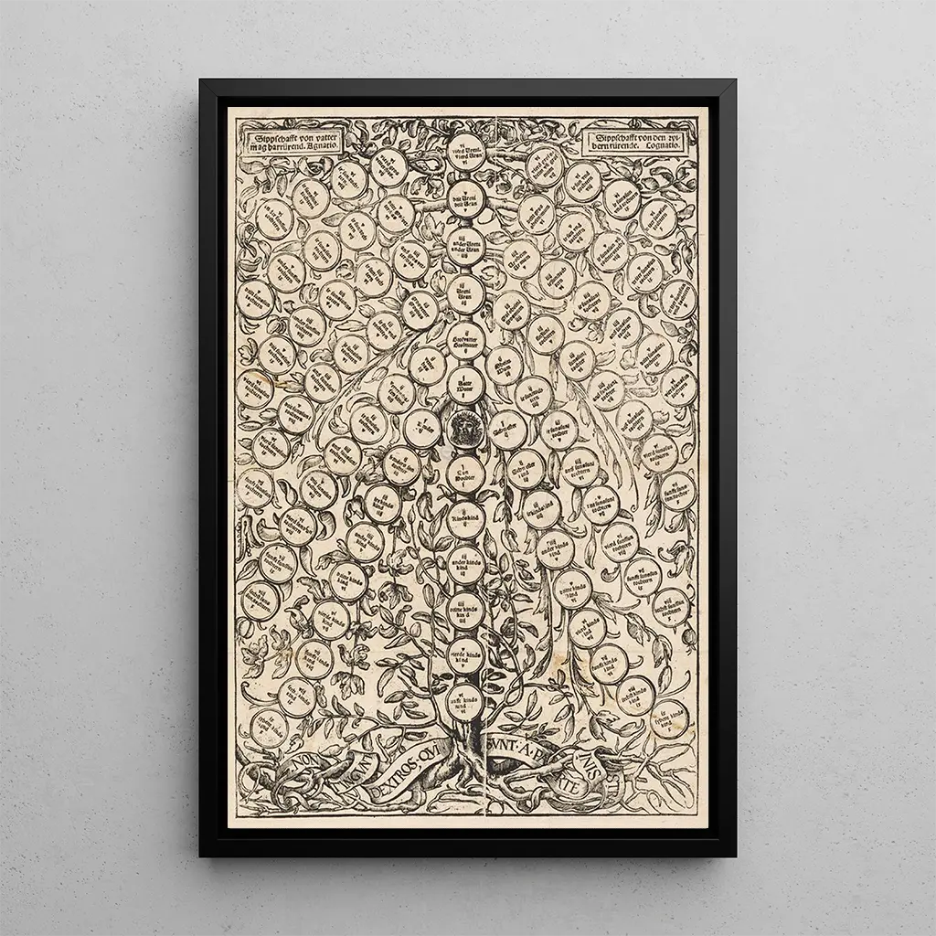 træ, der viser et slægts træ, er en kunsttryk, der tager dig med på en rejse gennem tid og slægter.
