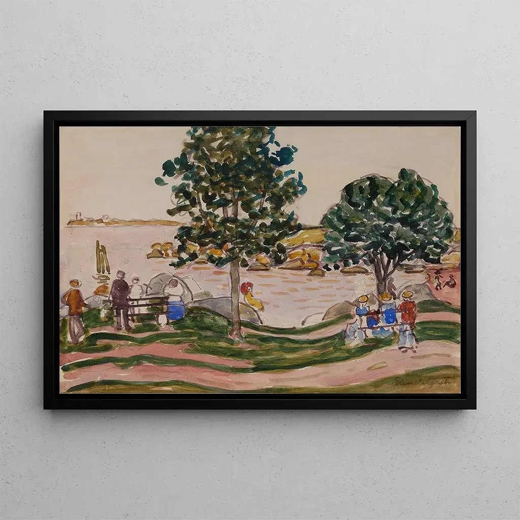 Route sinueuse i New England: et kunsttryk af Maurice Prendergast, der tager os med på snoede stier, hvor naturen afslører sig i al sin pragt. De livlige og glade farver, der er karakteristiske for Prendergasts kunst, skaber en vibrerende og dynamisk atmosfære. Penselstrøgene, både lette og udtryksfulde, hylder den amerikanske landskabs skønhed. Dette kunsttryk fremkalder en følelse af frihed og flugt, som om hver sving på vejen giver os et nyt perspektiv på den verden, der omgiver os, og inviterer til udforskning og eventyr. Maurice Prendergast: en mester i amerikansk post-impressionisme Maurice Prendergast, en ikonisk figur inden for amerikansk post-impressionisme, har formået at fange essensen af dagligdagen gennem sine værker. Aktiv i slutningen af det 19. århundrede og begyndelsen af det 20. århundrede, er han inspireret af landskaber og scener fra New England, samtidig med at han inddrager europæiske påvirkninger. Hans dristige brug af farve og hans teknik med plein air-maling gør det muligt for ham at skabe vibrerende og livfulde kompositioner. Prendergast spillede en afgørende rolle i udviklingen af amerikansk kunst, og hans arbejde fortsætter med at inspirere mange nutidige kunstnere. En dekorativ erhvervelse med mange fordele Kunsttrykket af kunstværket Route sinueuse en Nouvelle-Angleterre er et perfekt dekorativt valg til at berige dit hjem. Uanset om det er i stuen, på et kontor eller i et soveværelse, tilføjer dette kunsttryk et strejf af dynamik og farve. Dets trykkvalitet sikrer en trofast gengivelse af nuancer og detaljer i det originale værk, hvilket gør det muligt at nyde Prendergasts kunstneriske vision fuldt ud. Med sin æstetiske tiltrækningskraft forvandler dette kunsttryk ethvert rum til en fejring af den naturlige skønhed og eventyrets ånd, samtidig med at det skaber en varm og indbydende atmosfære.