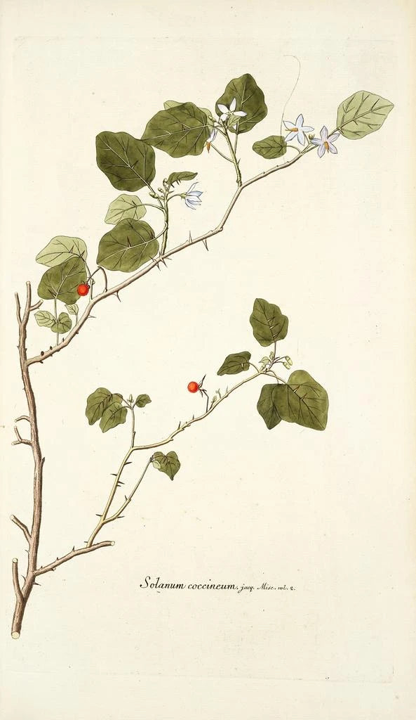Nikolaus Joseph Freiherr von Jacquin, botaniker og kunstner fra det XVIII. århundrede, formåede at forene sine passioner for videnskab og kunst. Hans dybdegående studier af eksotiske planter, udført under hans rejser, førte til skabelsen af værker, der både er videnskabelige dokumenter og kunstværker. Solanum coccineum er et perfekt eksempel på hans tilgang, hvor hver detalje er omhyggeligt observeret og gengivet. Hans arbejde har haft en varig indflydelse på botanikken og blomsterkunsten, og har inspireret mange kunstnere og videnskabsfolk gennem tiderne.