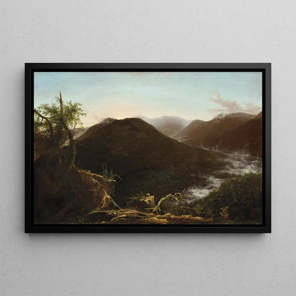 Thomas Cole, født i 1801 i England, anses som grundlæggeren af Hudson River-skolen, en kunstbevægelse der hylder de amerikanske landskaber. Påvirket af den europæiske romantik, formåede Cole at fange storheden i de naturlige landskaber, samtidig med at han indarbejdede åndelige og moralske temaer. Hans værk, ofte præget af symbolik, afspejler en dyb forbindelse til naturen og en bekymring for miljøets bevarelse. "Lever de soleil dans les Catskills" er et af hans mest berømte kunsttryk, skabt i 1826, og vidner om hans talent for at skildre lys og atmosfære, samtidig med at han påvirkede mange kunstnere i sin tid.