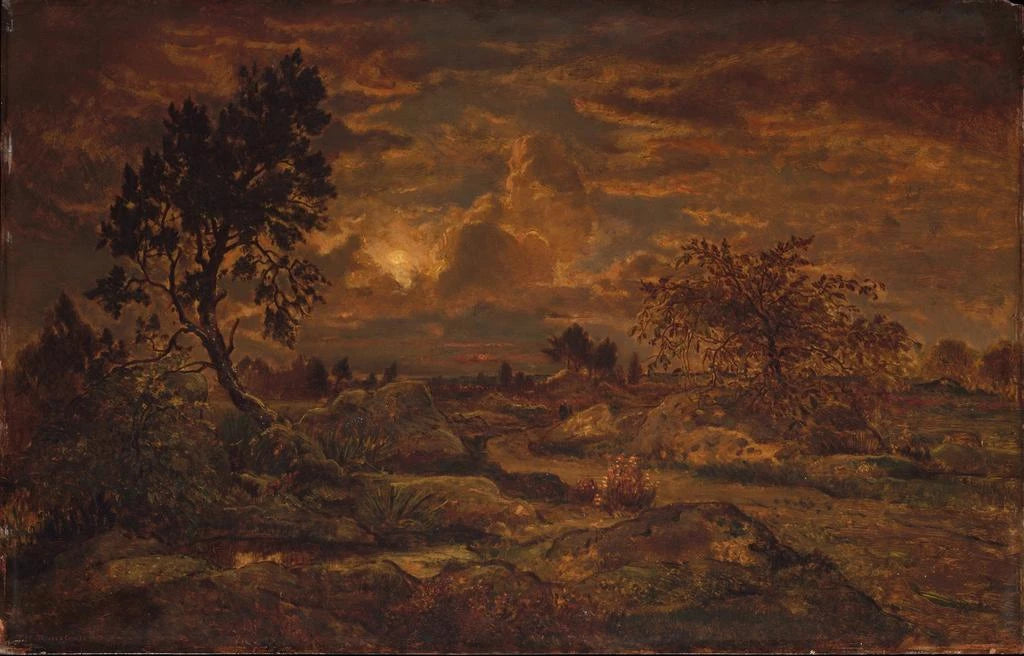 Kunsttryk | Solnedgang nær Arbonne - Théodore Rousseau