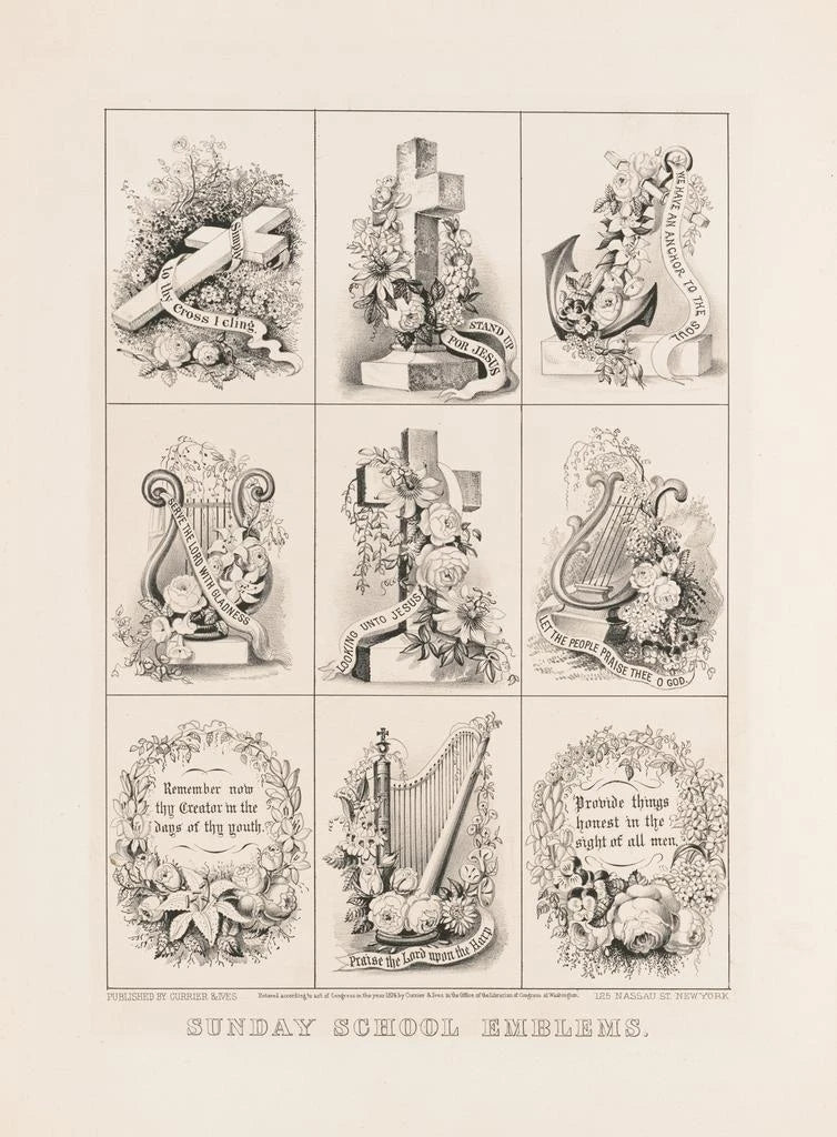 Kunsttryk | Émblèmes de l'école du dimanche - Currier Ives