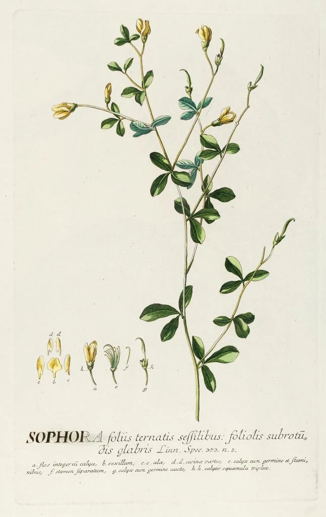 Georg Dionysius Ehret, aktiv i det 18. århundrede, er anerkendt som en af de største kunstneriske botanikere i sin tid. Hans passion for naturen og hans ønske om at dokumentere floraen har ført til skabelsen af kunstværker med enestående videnskabelig præcision. Påvirket af de botaniske opdagelser i sin tid, formåede Ehret at forene kunst og videnskab, hvilket skabte en ny genre, der har sat sit præg på kunstens historie. Hans værker, herunder "Sophora II", vidner om hans engagement i en trofast gengivelse af planter, samtidig med at de er gennemsyret af en kunstnerisk følsomhed, der gør dem tidløse.