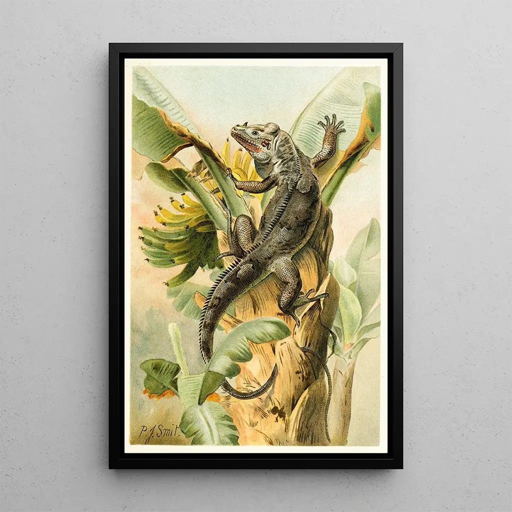 I denne kunsttryk af værket "L'Iguane noir" fanger Pierre Jacques Smit essensen af dette majestætiske dyr. Lærredet skiller sig ud med sine livlige farver, der skifter mellem dybgrønne nuancer og strålende sorte strejf, som fremkalder biodiversitetens rigdom. Smits teknik, der kombinerer realisme med en subtil fornemmelse af bevægelse, giver liv til iguaneen og gør den næsten håndgribelig. Atmosfæren, der udspringer af dette værk, inviterer til eftertanke og forundring over naturens rå skønhed.