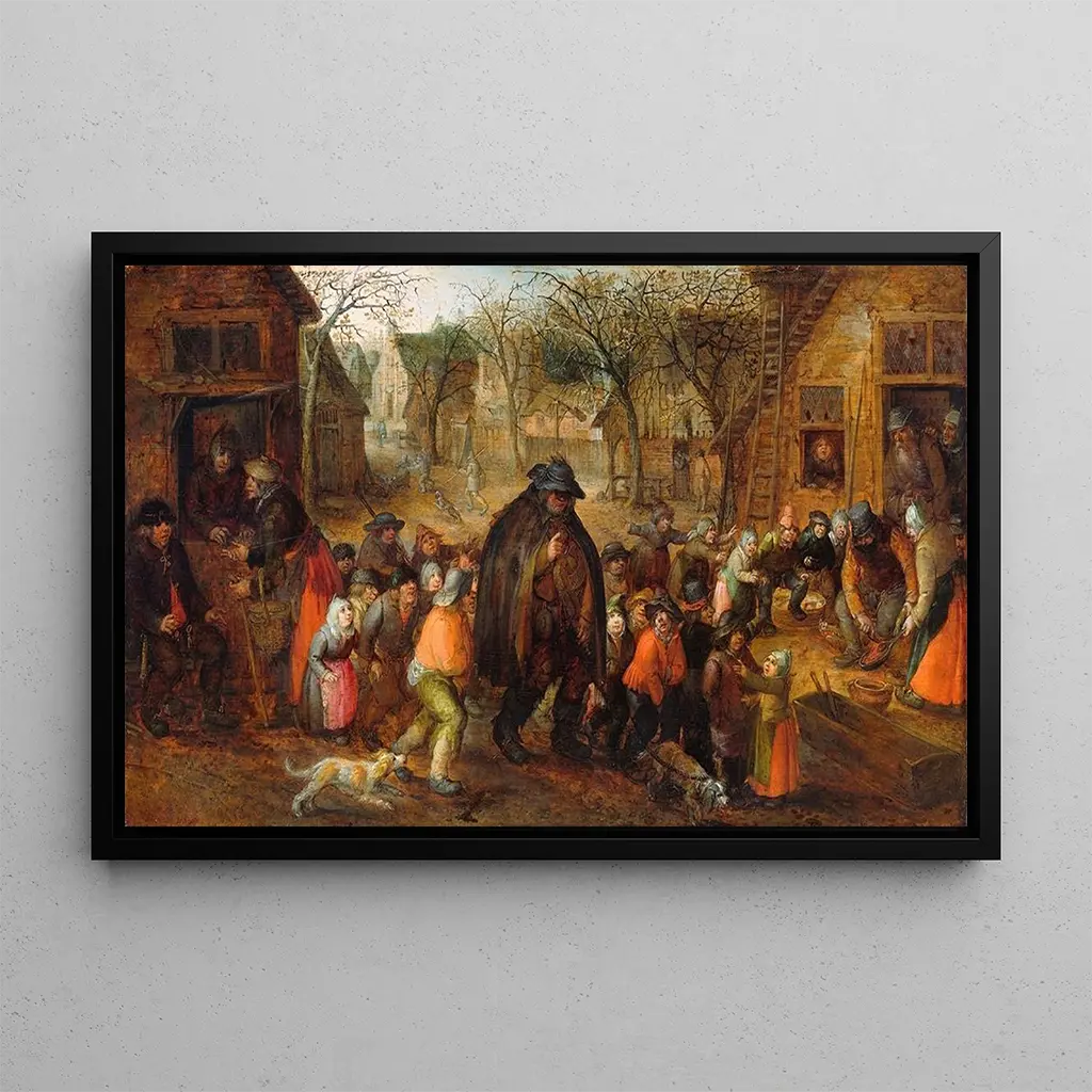 Joueur de vielle aveugle er et værk, der fremkalder melankoli og musikkens skønhed. Scenen forestiller en musiker, med lukkede øjne, fortabt i sit kunstværk, mens hans instrument udsender toner, der synes at svæve i luften. De mørke farver og skygger understreger øjeblikkets intensitet, hvilket skaber en intim og følelsesladet atmosfære. David Vinckboons, med sin sans for detaljer, formår at formidle en dyb forbindelse mellem musikeren og hans instrument, hvilket inviterer beskueren til at føle magien i musikken gennem dette kunsttryk.