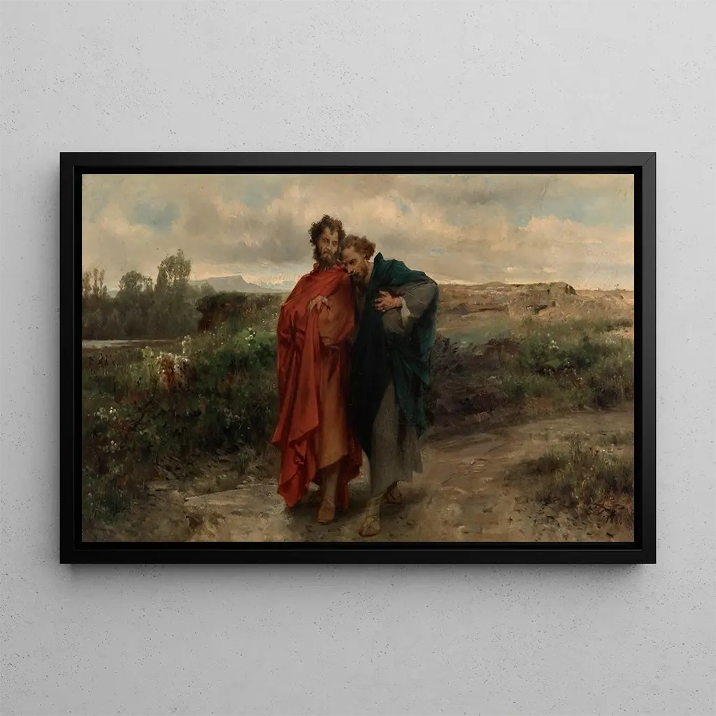 Chemin vers Emmaüs : en åndelig åbenbaringsoplevelse Kunsttrykket af Chemin vers Emmaüs, værk af Johann Till den Yngre, skildrer et øjeblik af intens åndelig åbenbaring. I denne ikoniske scene går to disciple ved siden af en mystisk rejsende, deres ansigter udtrykker både nysgerrighed og forundring. De varme og jordnære farver skaber en intim atmosfære, mens det bløde lys fremhæver karakterernes udtryk. Den kyndigt afbalancerede komposition guider betragterens blik gennem maleriet og inviterer til en dyb refleksion over scenen. Hvert detalje, fra tøjet til de omkringliggende landskaber, bidrager til den palpable følelse, der udspringer af dette guddommelige møde. Johann Till den Yngre : en kunstner af åndelig fornyelse Johann Till den Yngre, maler aktiv i det 17. århundrede, er kendt for sine religiøse kunstværker, der afspejler tidens åndelige bekymringer. Influenceret af barokstilen har han formået at forene realisme og symbolik, hvilket skaber malerier, der taler til både sindet og sjælen. Chemin vers Emmaüs er et af hans mesterværker, der illustrerer en bibelsk scene, som har inspireret mange kunstnere gennem århundreder. Till den Yngre har formået at fange den kristne tro i sin essens, hvilket gør hans værker tidløse og universelle. Hans kunstneriske arv fortsætter med at påvirke kunstelskere og forskere, der søger åndelig autenticitet. En dekorativ tilføjelse med mange fordele Kunsttrykket af Chemin vers Emmaüs er et dekorativt stykke, der vil berige ethvert opholdsrum. Uanset om det er i en stue, spisestue eller et kontor, tilføjer dette lærred en følelse af ro og åndelig dybde. Kvaliteten af kunsttrykket sikrer en trofast gengivelse af nuancer og detaljer fra det originale værk, hvilket gør det muligt at nyde dets æstetiske appel dagligt. Ved at integrere dette maleri i din indretning giver du dit hjem en kontemplativ dimension, samtidig med at du vækker refleksioner over troen og det menneskelige møde.