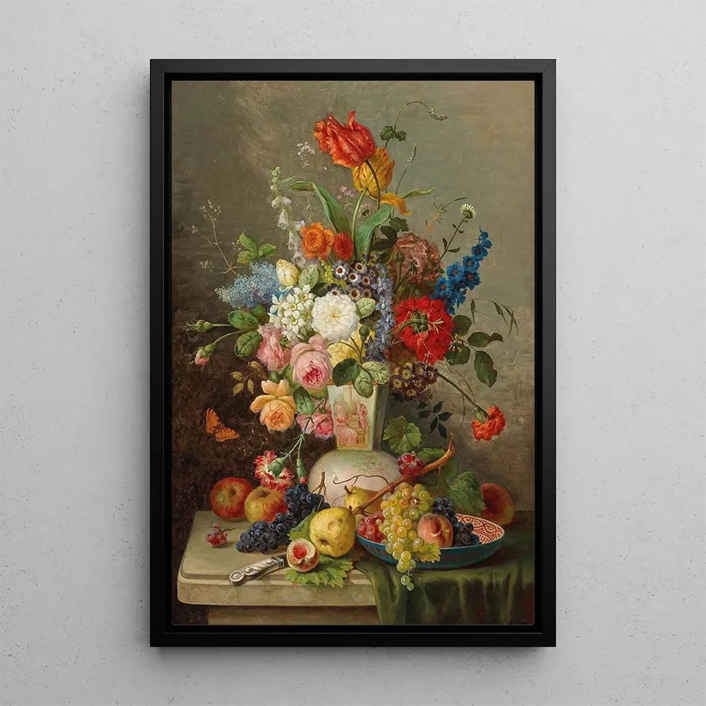 Franz Hohenberger, actif au XIXe siècle, est reconnu pour ses natures mortes qui capturent la splendeur éphémère de la vie. Influencé par les maîtres flamands, il a su développer un style qui allie précision et sensibilité. Son travail se distingue par une attention minutieuse aux détails et une palette de couleurs vibrantes qui insufflent une vie nouvelle à des compositions classiques. Le Grand bouquet de fleurs avec fruits sur une dalle de pierre est un exemple parfait de son habileté à transformer des éléments ordinaires en œuvres d'art extraordinaires, témoignant de son talent et de son engagement envers la beauté naturelle.