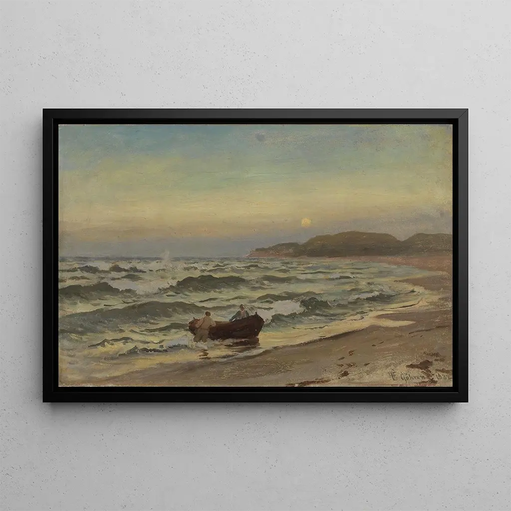 Hans Gude, norsk maler fra det 19. århundrede, er kendt for sine maritime kunsttryk og sine skildringer af den skandinaviske natur. Påvirket af romantikken, formåede han at fange den vilde skønhed af de norske og tyske kyster. Gude studerede ved Düsseldorf Kunstakademi, hvor han udviklede sin karakteristiske stil. Hans værker havde en betydelig indflydelse på den kunstneriske bevægelse i sin tid, og han betragtes ofte som en af pionererne inden for det moderne landskab i Norge. Hans malerier, som "Tempête à Rügen", vidner om hans kærlighed til naturen og hans evne til at fremkalde dybe følelser gennem sine kompositioner.