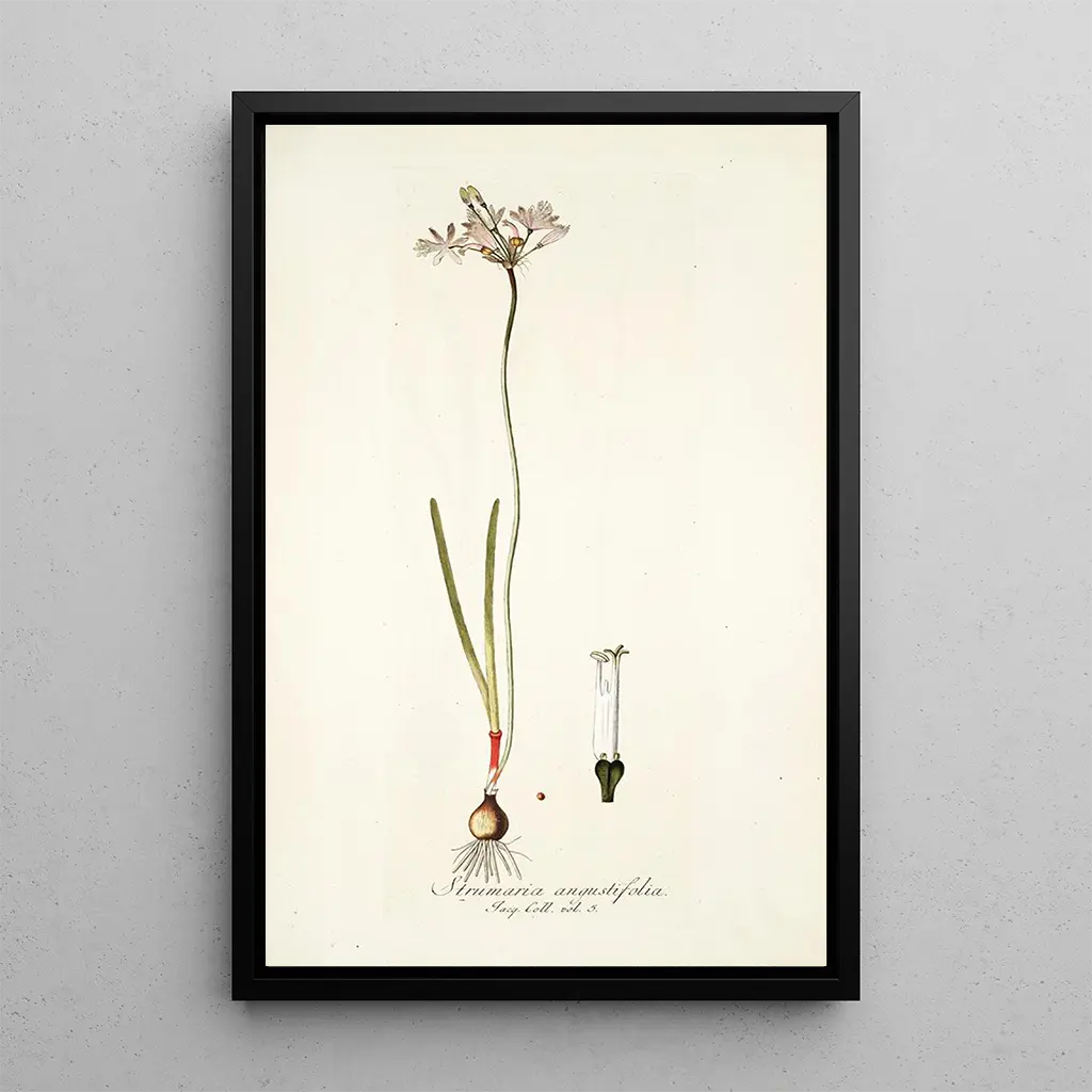 Kunsttrykket af Strumaria angustifolia er et ideelt dekorativt valg for dem, der ønsker at tilføre et strejf af eksotisme til deres hjem. Uanset om det er i stuen, på kontoret eller i soveværelset, tiltrækker dette lærred opmærksomhed og vækker beundring. Det høje trykkvalitet sikrer en enestående nøjagtighed i detaljerne og farverne i det originale værk, hvilket garanterer en stærk visuel effekt. Ved at integrere dette værk i din indretning inviterer du naturens skønhed ind i din hverdag og skaber samtidig et varmt og indbydende rum.