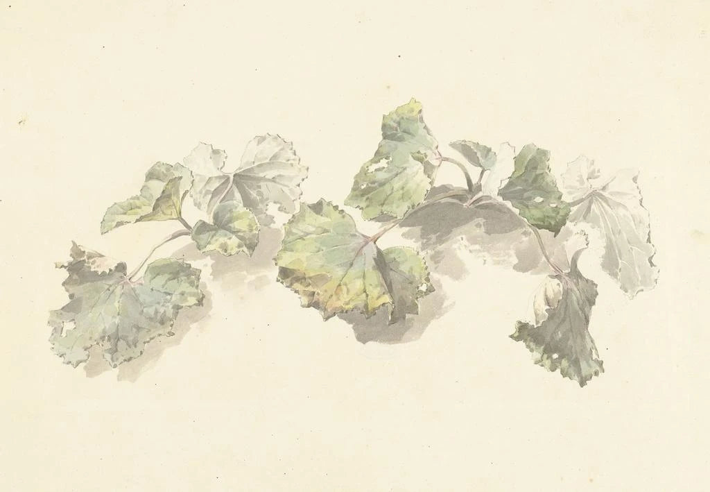 L'œuvre "Studiet af blade" af Josephus Augustus Knip fremkalder den flygtige skønhed i naturen gennem en omhyggelig komposition. Detaljerne i bladene, gengivet med bemærkelsesværdig præcision, fanger lyset og skyggen og skaber en rolig og kontemplativ atmosfære. Nuancerne af grøn, gul og brun blander sig harmonisk og tilbyder en palette, der minder om de skiftende sæsoner. Akvarellens teknik, brugt med finesse, formidler letheden og gennemsigtigheden i bladene og inviterer betragteren til en fordybelse i en rig og levende planteverden.