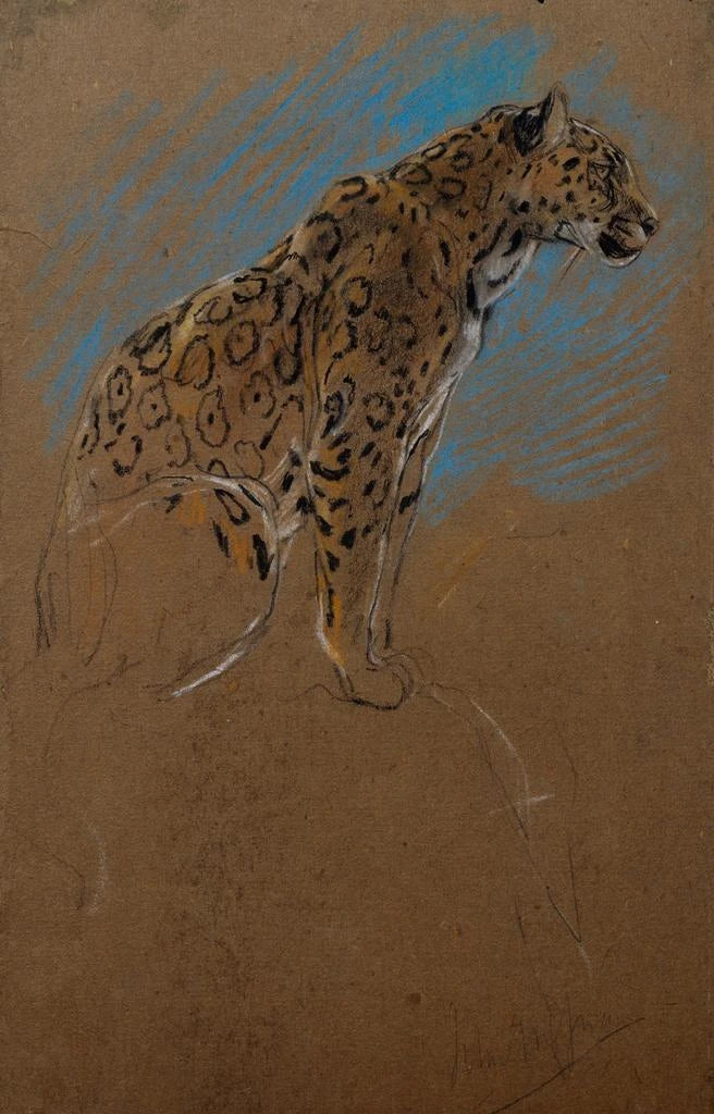 John Macallan Swan’s værk "Studie af en jaguar" indfanger med bravur kraften og yndefaldet hos dette ikoniske dyr. De minutøse detaljer, fra pelsepletter til fremtrædende muskler, afslører en imponerende teknisk kunnen. De varme, jordnære farver kombineret med dybe skygger skaber en atmosfære, der er både vild og fængslende. Swan formår at formidle essensen af jaguaren, hvilket gør dette studie til en sand hyldest til dyrelivet. Hvert penselstrøg synes at ånde liv, og inviterer betragteren til at beundre naturens rå skønhed.