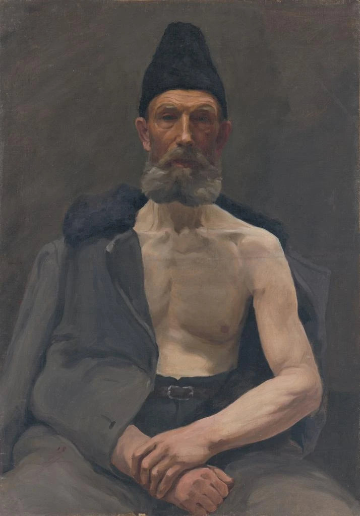 L'œuvre "Studiet af en russisk fange" af Ladislav Tresko skiller sig ud med sin rørende skildring af en lænket mand, symbol på lidelse og modstandskraft. De mørke farver og de forstærkede skygger skaber en tung, næsten håndgribelig stemning, der straks fanger øjet. Treskos teknik, der kombinerer realisme og ekspressionisme, gør det muligt at mærke intensiteten af personens følelser. Hvert detalje, fra det fortvivlede blik til lænkerne, der hindrer, fortæller en tragisk historie og inviterer seeren til en dyb refleksion over frihed og menneskelig lidelse.