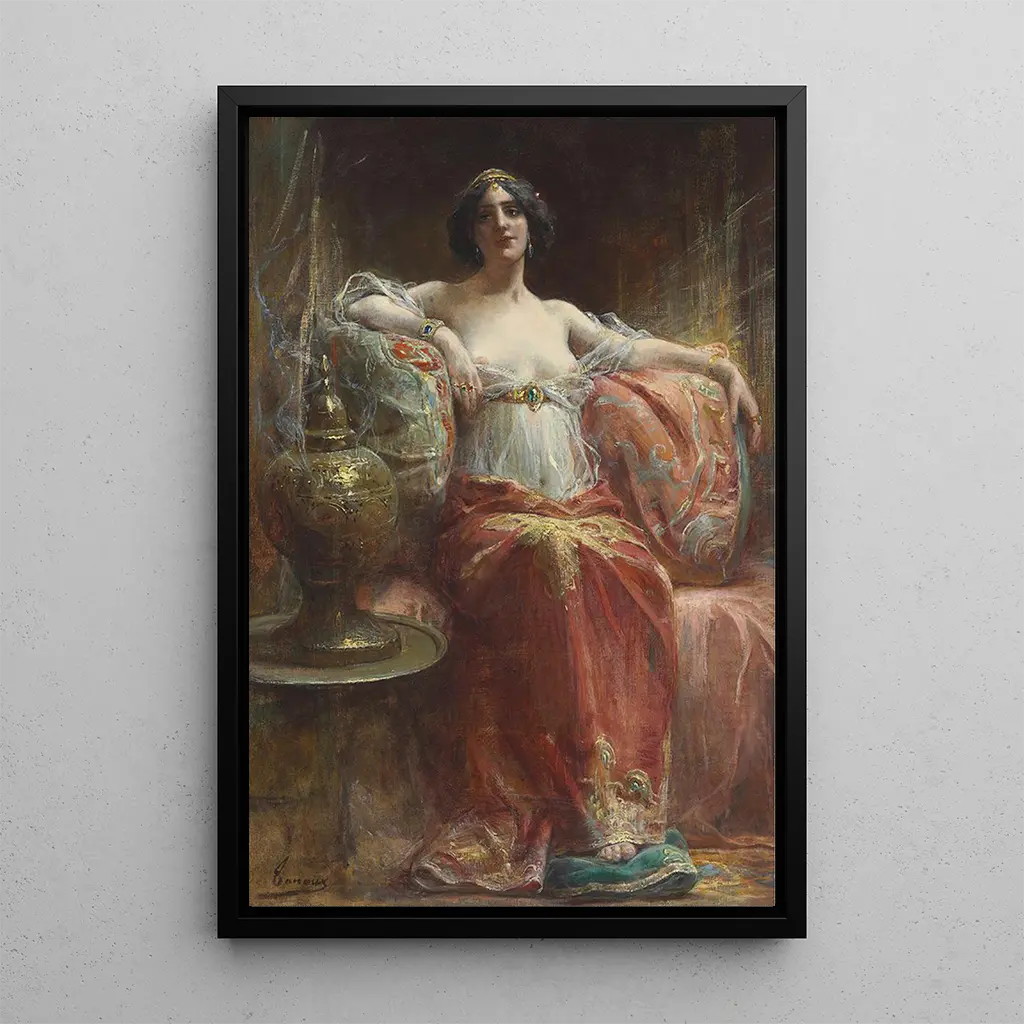 Valget af kunsttrykket "Sultanens yndlings" er et klogt valg for at forfine dit hjem. Uanset om det er i stuen, på kontoret eller i soveværelset, vil dette lærred tilføre elegance og eksotisme til din indretning. Dets trykkvalitet sikrer en trofast gengivelse af farver og detaljer i det originale værk, hvilket giver en æstetisk tiltrækning, der ikke kan ignoreres. Ved at tilføje dette billede til din samling, får du ikke blot en simpel dekoration, men også en fascinerende historie og en varm atmosfære ind i dit opholdsrum.