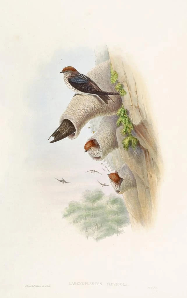 Indian Cliff Swallow Maleri - John Gould | Kunsttryk Source: Tableau Hirondelle des falaises indienne - John Gould | Reproduction