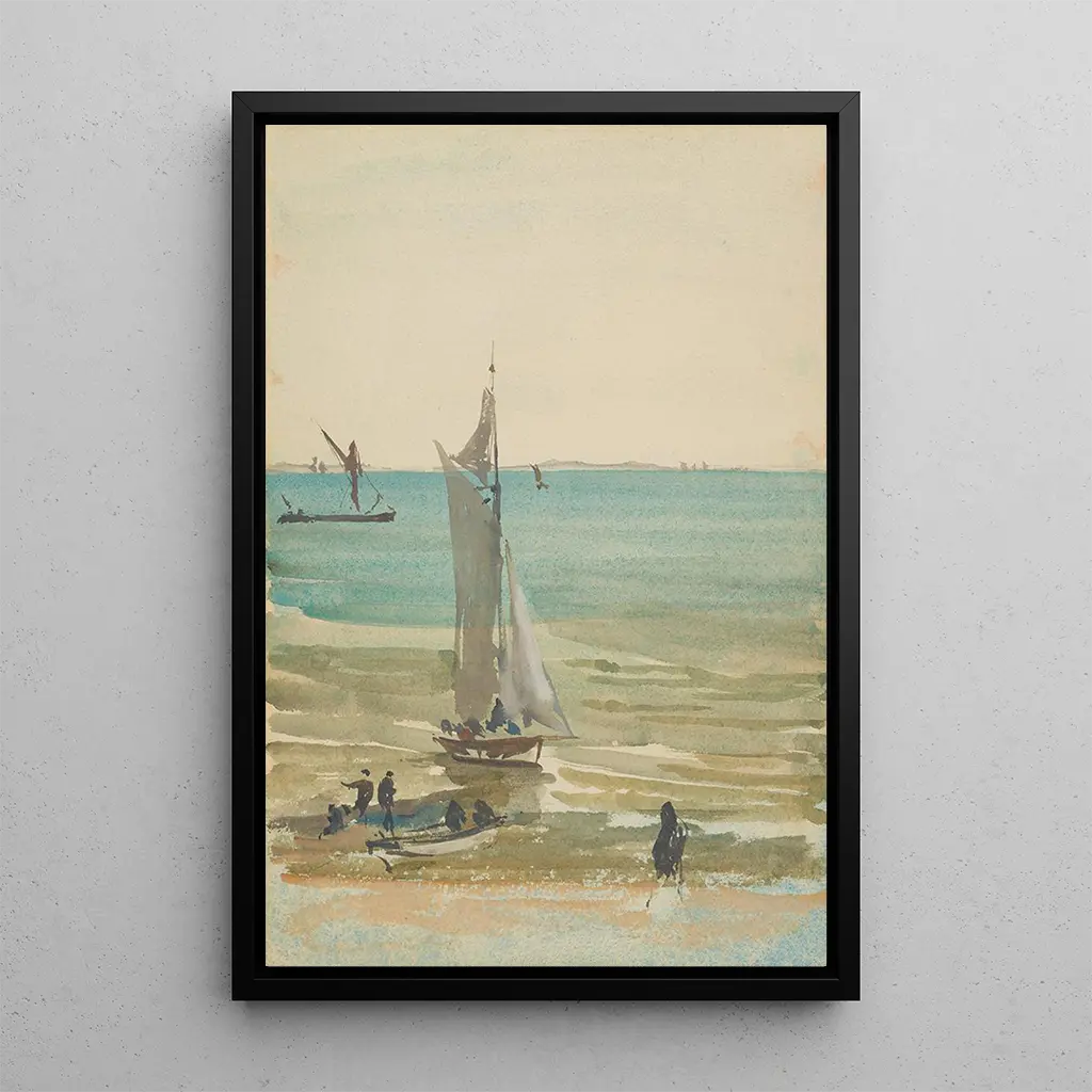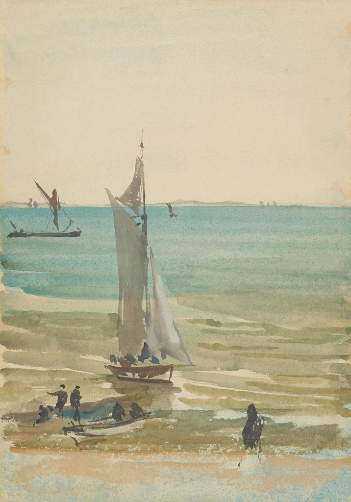 "Southend Le yacht de plaisance" dépeint une scène vivante où le mouvement des voiles blanches contraste avec la tranquillité des eaux calmes. Whistler, maître de la lumière, utilise des teintes douces pour évoquer la chaleur d'une journée ensoleillée. Les détails du yacht, avec ses lignes élégantes, sont rendus avec une précision qui souligne l'habileté de l'artiste. L'atmosphère de ce tableau invite à l'évasion, transportant le spectateur vers un moment de détente et de plaisir en mer, tout en célébrant la beauté de la nature.