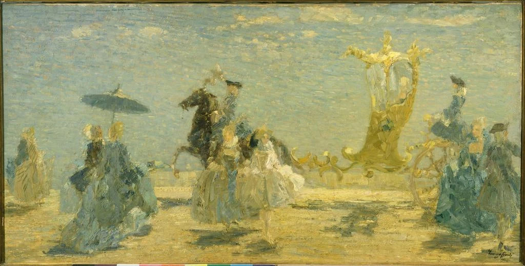 Emma Ciardi, italiensk kunstner aktiv i slutningen af 1800-tallet og begyndelsen af 1900-tallet, er kendt for sine maritime landskaber og skildringer af havet. Påvirket af impressionismen, har hun formået at fange skønheden i kysterne og bølgerne med en unik følsomhed. Hendes karriere, selvom den er mindre kendt end hendes mandlige samtidige, har præget sin tid med sin evne til at oversætte følelser og lys. "Symfoni i blå" vidner om hendes talent og engagement i naturens skildring, hvilket gør hende til en vigtig figur i kunstens historie.