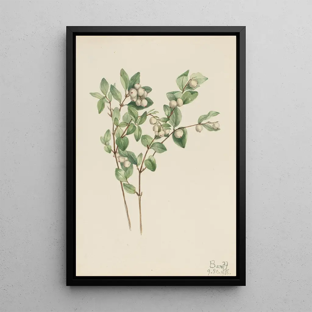 Det kunsttryk Symphorine hvid Symphoricarpos albus af Mary Vaux Walcott fanger letheden og friskheden i foråret. De små hvide bær, omhyggeligt gengivet, står ud mod en grøn baggrund, hvilket skaber en slående kontrast. Akvarelteknikken giver kunstneren mulighed for at lege med gennemsigtighed og lysstyrke, hvilket hylder den flygtige skønhed af denne plante. Hvert detalje er omhyggeligt observeret, hvilket vidner om en passion for botanik og et ønske om at fejre naturen i al sin pragt.