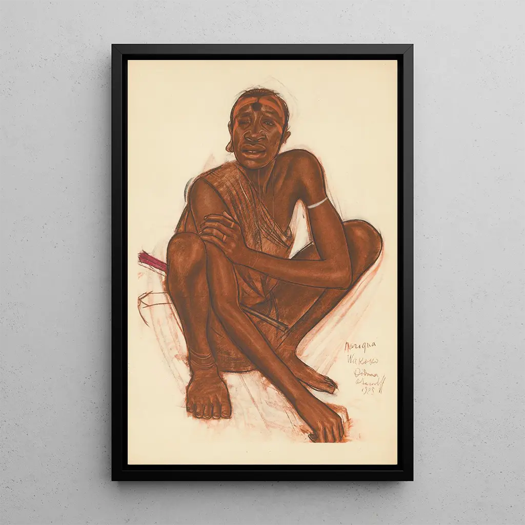 Kunsttrykket af værket Dessins og malerier fra Afrika pl 41 af Alexandre Iacovleff tager os med på en rejse gennem en livlig verden, hvor varme farver og stiliserede former fremkalder rigdommen i de afrikanske traditioner. Kunstneren bruger jordfarvede nuancer, der blander okker og røde, hvilket tilfører en mærkbar varme til hans kompositioner. Teknikken med kul og akvarel kombineres harmonisk, hvilket skaber en atmosfære, der er både dynamisk og eftertænksom. Hvert træk synes at fortælle en historie, en legende, og inviterer betragteren til at udforske den afrikanske sjæls dybder.