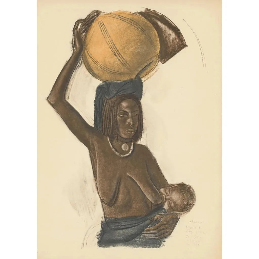 Kunsttrykket af værket Dessins og malerier fra Afrika pl 7 af Alexandre Iacovleff tager os med på en rejse ind i en verden fyldt med livlige farver og teksturer. Dette lærred, rigt på detaljer, fanger essensen af afrikanske landskaber og traditioner. De varme, jordnære nuancer fremkalder kontinentets varme, mens de fine mønstre vidner om en grundig observation af dagligdagen. Iacovleff formår gennem sin maleteknik at skabe en atmosfære, der er både intim og universel, og inviterer seeren til at udforske de skjulte fortællinger bag hvert penselstrøg.