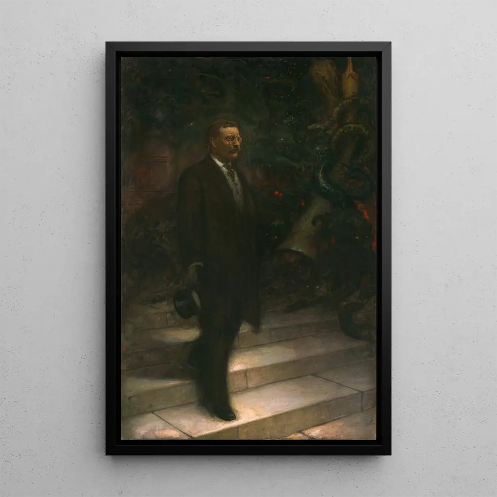 I dette slående værk fanger Sigismund de Ivanowski essensen af Theodore Roosevelt, Amerikas 26. præsident. Maleriet udstråler en mærkbar styrke og beslutsomhed, der illustrerer Roosevelts dynamiske karakter. De rige farver og de omhyggelige detaljer i hans kostume og udtryk formidler en følelse af magt og lederskab. Den klassiske portræt teknik, Ivanowski anvender, giver dette kunsttryk en historisk dybde og hylder en mand, der har præget sin tid gennem sit engagement og sin vision.