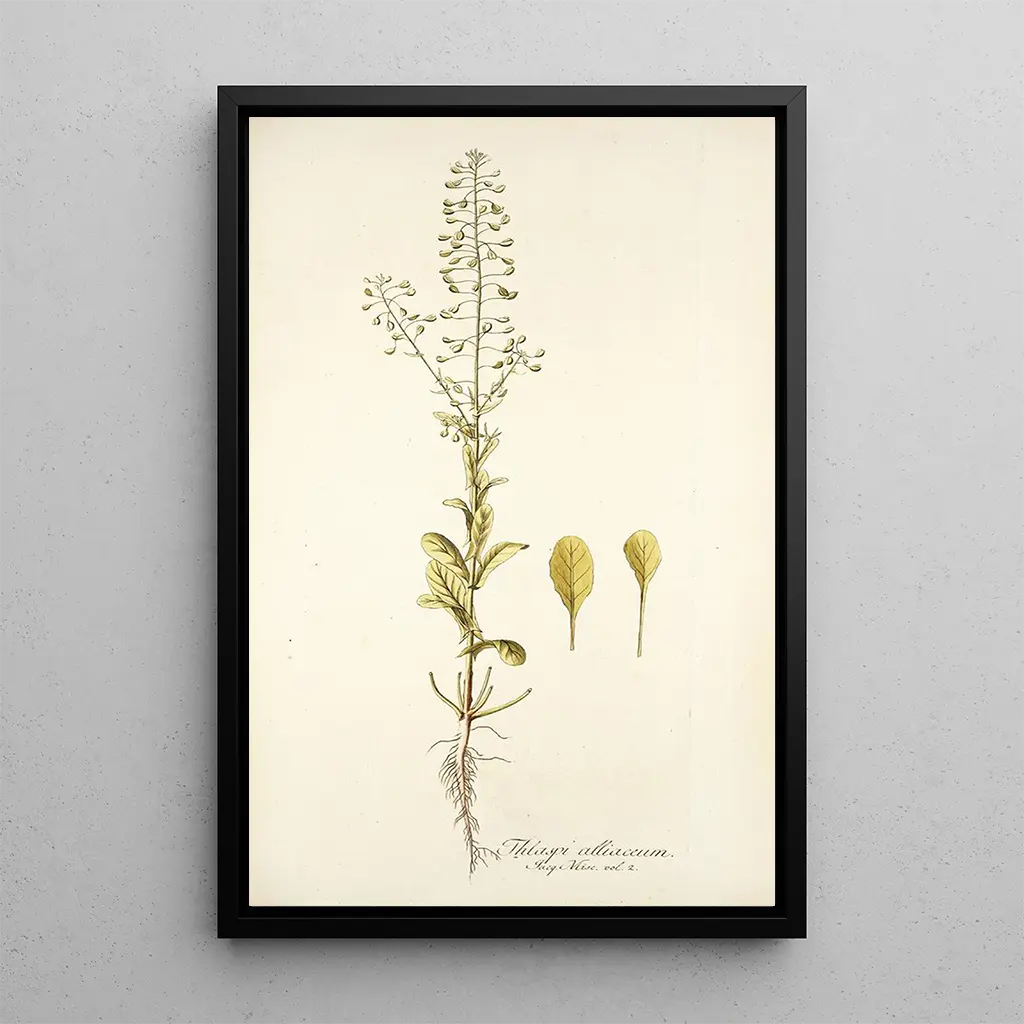 Kunsttrykket af Thlaspi alliaceum er et ideelt dekorativt stykke til forskellige opholdsrum, hvad enten det er i en stue, et kontor eller et soveværelse. Dets trykkvalitet og trofasthed over for de originale farver gør det til et attraktivt valg for dem, der værdsætter botanisk kunst. Ved at integrere dette lærred i din indretning bringer du et strejf af natur og ro ind i dit hjem. Dets æstetiske appel og det berigende historiske element gør det til et fascinerende samtaleemne, samtidig med at det skaber en afslappende og inspirerende atmosfære i dit rum.