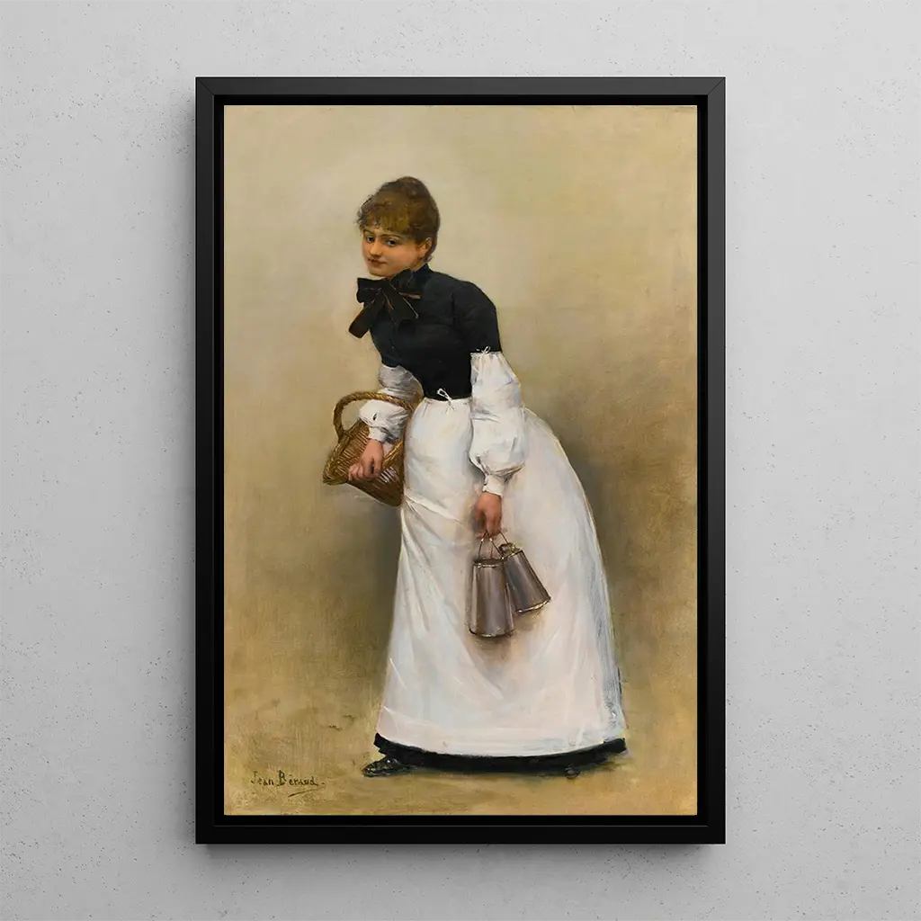 La Servante : et øjeblik af liv fanget med finesse I "La Servante" dykker Jean Béraud ned i et øjeblik af dagliglivet, hvor det bløde lys og de varme farver skaber en intim atmosfære. Kompositionen fremhæver en ung kvinde, klædt i en enkel kjole, som synes opslugt af sine tanker. De omhyggelige detaljer i hendes omgivelser, fra køkkenredskaber til teksturer af stoffer, vidner om kunstnerens talent for at fange virkeligheden. Lysspillet, subtilt orkestreret, understreger melankolien og skønheden i denne scene, og inviterer betragteren til at reflektere over denne tjenestepiges liv, både almindeligt og poetisk. Jean Béraud : en maler af det parisiske liv Jean Béraud, aktiv i slutningen af det 19. århundrede, er kendt for sine skildringer af det parisiske liv. Påvirket af impressionismen, har han udviklet en unik stil, der kombinerer realisme og poetiske elementer. Hans værker, ofte præget af nostalgi, afspejler samfundet i hans tid og fanger scener fra dagligdagen med en enestående følsomhed. Béraud var også aktiv i Salon, hvor han udstillede sine kunstværker, hvilket styrkede hans ry. "La Servante" er en del af denne tradition, der illustrerer hans interesse for almindelige personer og deres omgivelser. En dekorativ kunsttryk med mange fordele Kunsttrykket af "La Servante" er et dekorativt stykke, der vil berige dit hjem, uanset om det er i en stue, et kontor eller et soveværelse. Dets trykkvalitet og trofasthed mod de originale farver sikrer en æstetisk tiltrækning. Dette kunsttryk fremkalder en varm og indbydende atmosfære, perfekt til at skabe et harmonisk opholdsrum. Ved at vælge dette kunsttryk vælger du et værk, der ikke blot forbedrer din indretning, men også fortæller en historie, den om en æra og et liv, og tilføjer et strejf af elegance til dit hjem.