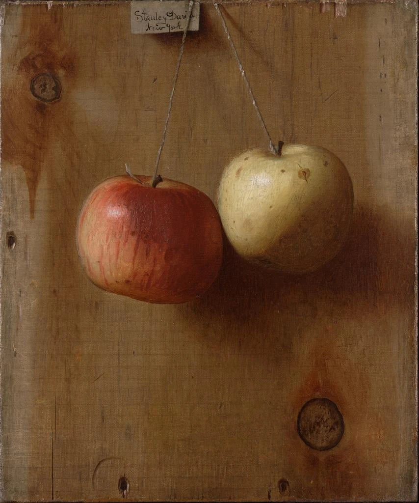 Reproduktion To æbler hænger - Scott Evans – Fascinerende introduktion I den fascinerende verden af moderne kunst formår visse værker at fange selve essensen af enkelhed, samtidig med at de vækker dybe følelser. "To æbler hænger" af Scott Evans er et af disse værker, der gennem sin tilsyneladende banalitet inviterer os til en bredere refleksion over perceptionens og æstetikens natur. Dette værk, hvor to frugter hænger i et uendeligt rum, fremkalder en subtil dialog mellem dagligdagen og kunsten, og får os til at genopdage velkendte objekter i et nyt lys. Magien ligger i denne evne til at forvandle det almindelige til det ekstraordinære, at transcendere hverdagen gennem en unik kunstnerisk tilgang. Værkets stil og singularitet Scott Evans skiller sig ud med en stil, der er både minimalistisk og evocerende. I "To æbler hænger" leger han med lys og skygge, hvilket skaber en atmosfære, der synes at hænge i tiden. De valgte farver, både livlige og delikate, giver æblerne en næsten levende kvalitet, som om de er ved at blive levende. Kontrasten mellem enkelheden af de afbildede objekter og dybden af de følelser, de vækker, er karakteristisk for Evans' værker. Ved at placere disse æbler i et tomt rum opfordrer kunstneren os til at betragte ikke kun frugtens skønhed, men også begrebet tomrum og fylde, tilstedeværelse og fravær. På denne måde genopfinder han vores forhold til objektet og inviterer os til en introspektion, der går ud over blot at observere. Kunstneren og hans indflydelse Scott Evans er en kunstner, hvis rejse er præget af en uophørlig søgen efter mening og skønhed. Hans uddannelse inden for visuel kunst og hans immersion i forskellige kunstkulturer har formet hans unikke vision. Influenceret af strømninger som surrealismen og minimalismen formår Evans at skabe værker, der resonnerer med en rørende universelhed. Hans arbejde opfattes ofte som en invitation til at sænke tempoet, værdsætte de ofte oversete detaljer i vores hverdag. Gennem sine kreationer udfordrer han vores forhold til naturen, kunsten og os selv. "To æbler hænger" er et perfekt eksempel på denne tilgang, hvor hvert element er omhyggeligt tænkt for at fremkalde en refleksion over skønheden
