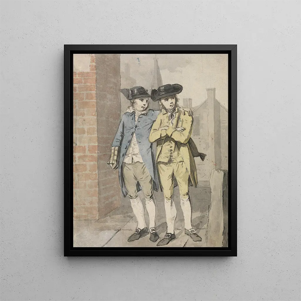 L'værk "Deux skolebørn" af Elias Martin er en invitation til at dykke ned i barndommens delikate og intime univers. Dette maleri, der udfolder sig med en mærkbar blidhed, fanger et suspendet øjeblik mellem uskyld og nysgerrighed. I en scene, hvor to unge drenge står side om side, formår kunstneren at fremkalde en atmosfære af kammeratskab, samtidig med at nuancer af deres personlighed træder frem gennem deres udtryk og holdninger. Det bløde lys, der bader kompositionen, forstærker følelsen af ro, hvilket gør seeren til vidne til en ægte samhørighed. Dette værk er ikke blot en simpel skildring af barndom, men tager os med på en refleksion over tidens gang og skønheden i menneskelige relationer.