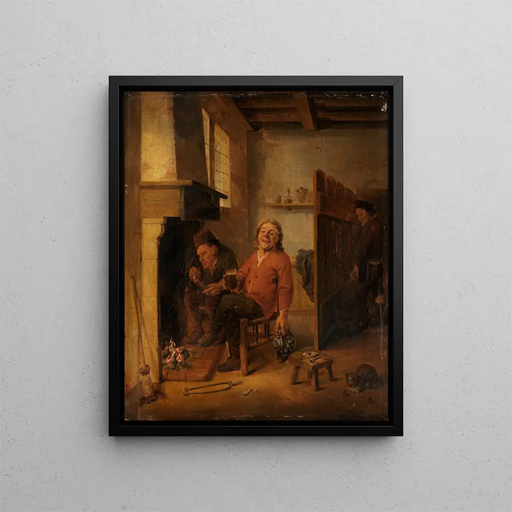 Kunsttryk "Deux fermiers buvant au coin du feu" af Abraham Diepraam transporterer seeren ind i en intim atmosfære, hvor varmen fra en pejs samler karakteristiske figurer fra det landlige liv i det 17. århundrede. Dette maleri, præget af realisme og hygge, inviterer til en blid og beroligende refleksion. De varme nuancer og lyslege skaber en omsluttende stemning, der fremhæver enkelheden og rigdommen i menneskelige udvekslinger, samtidig med at det fremviser kunstnerens håndværk. I dette værk formår Diepraam at fange selve essensen af det landlige liv, og forvandler et almindeligt øjeblik til en dybt følelsesladet og meningsfuld scene.