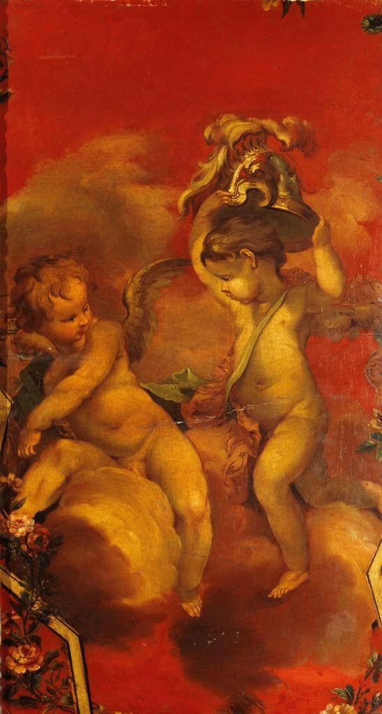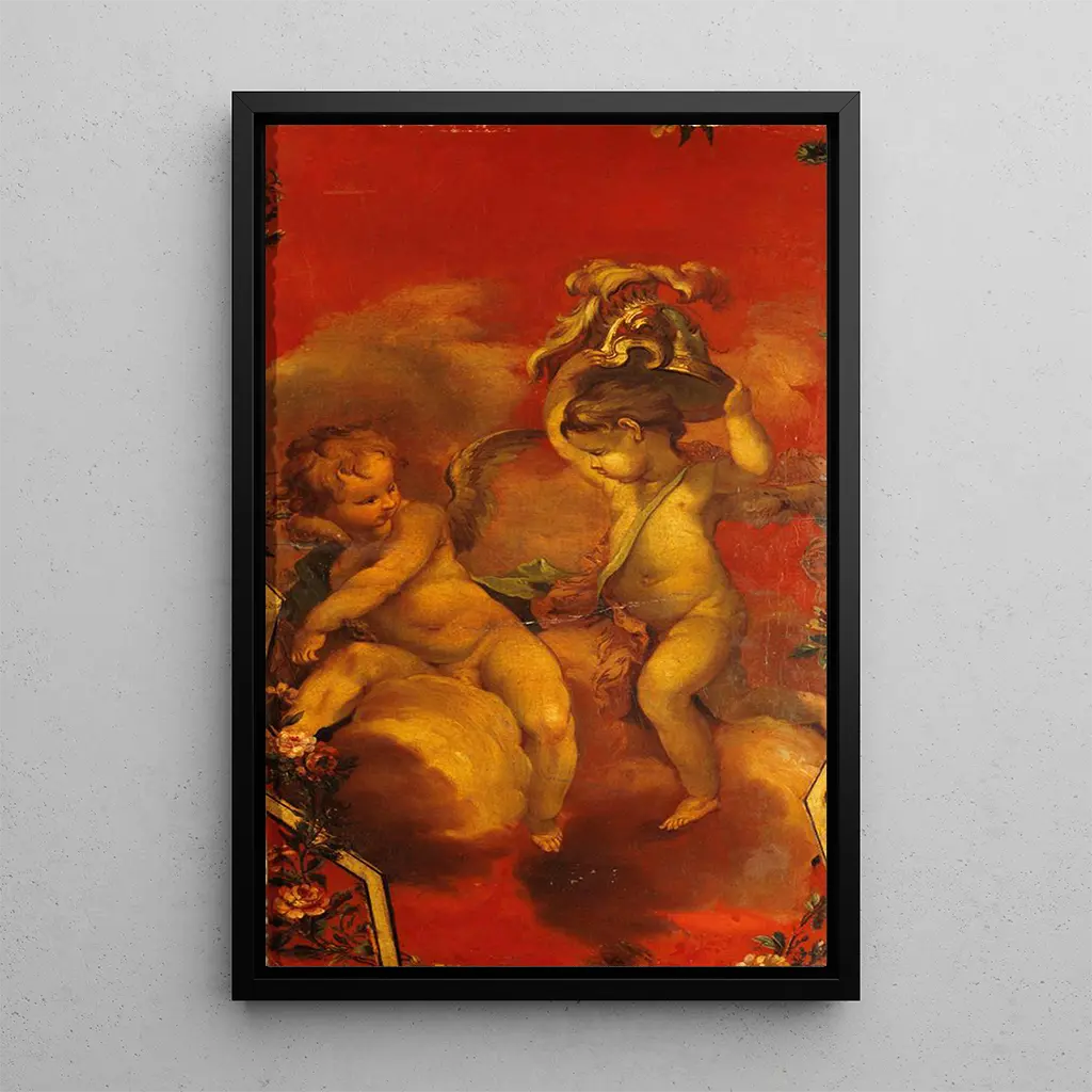 Kunsttryk | To genier med hjelm - Fransk Skole