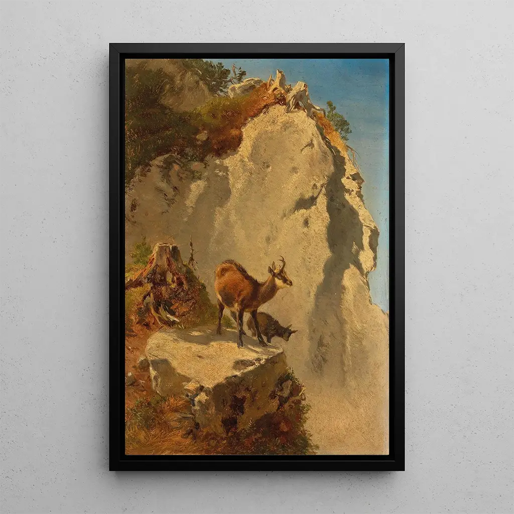 La kunsttryk de la toile Deux chamois en haute montagne d'Anton Schrödl nous plonge au cœur des paysages majestueux des Alpes. Les chamois, figures emblématiques de cette région, sont représentés avec une précision remarquable, évoluant dans un environnement sauvage et grandiose. Les nuances de vert et de brun, associées à des touches de blanc pour les sommets enneigés, créent un contraste saisissant qui met en valeur la beauté naturelle de la faune alpine. La technique de l'artiste, alliant réalisme et sensibilité, permet de ressentir la fraîcheur de l'air montagnard et l'authenticité de cette scène.