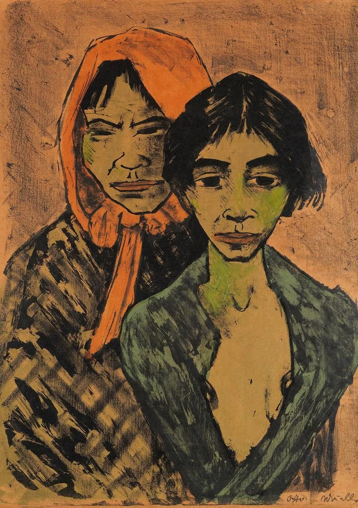 Kunsttryk | To romske mødre med datter - Otto Mueller