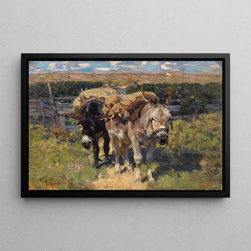 Deux æsler : en idyllisk scene fuld af charme "Deux ânes" af Heinrich von Zügel er et kunsttryk, der fanger enkelheden og skønheden i det landlige liv. Dette maleri skildrer to æsler fredeligt placeret i et grønt landskab, omgivet af vilde blomster. De varme og jordnære farver, kombineret med lysreflekser, giver scenen en blid og indbydende atmosfære. Zügel, med sit talent for detaljen, formår at formidle naturens ro og dyrenes samhørighed, hvilket skaber et kunsttryk, der vækker følelser af blidhed og fred i landlig idyl. Heinrich von Zügel : en mester i dyremaleri Heinrich von Zügel, født i 1850, er kendt for sine realistiske kunsttryk af dyr og landskaber. Opvokset i en kunstnerisk tradition, der værdsætter grundig observation, har han udviklet en stil, der kombinerer præcision og følsomhed. Zügel blev påvirket af naturalismen, og søgte at skildre naturen med bemærkelsesværdig troværdighed. Hans karriere, der strækker sig over slutningen af 1800-tallet og begyndelsen af 1900-tallet, er præget af en række kunsttryk, der hylder dyrelivets og plantelivets skønhed. "Deux ânes" er et perfekt eksempel på hans evne til at fange enkle, men alligevel udtryksfulde øjeblikke. En dekorativ kunsttryk med mange fordele Kunsttrykket af "Deux ânes" er en charmerende tilføjelse til enhver indretning, hvad enten det er stue, køkken eller kontor. Den varme atmosfære og det idylliske udtryk bringer et strejf af natur ind i dit hjem. Kvaliteten af kunsttrykket sikrer en trofast gengivelse af det originale værk, så du kan nyde skønheden af Zügel i dit eget hjem. Ved at vælge dette maleri giver du dit interiør et stykke, der vækker glæde og eftertanke, samtidig med at du tilføjer en kunstnerisk og varm stemning til din indretning.